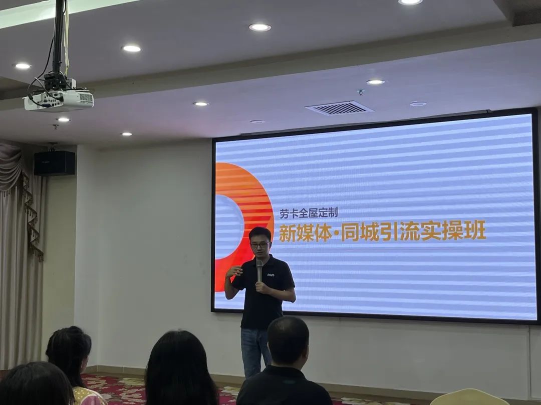 开营仪式上,劳卡副总裁喻总致辞表示:当下消费群体日益年轻化,抖音已经成为终端销售扩宽市场的重要渠道之一,希望各位经销商伙伴能够通过此次抖音特训,及时抓住短视频风口,学会短视频营销,快速抢占同城流量市场,通过打造同城IP号实现从线上获客引流到线下盈利转化。