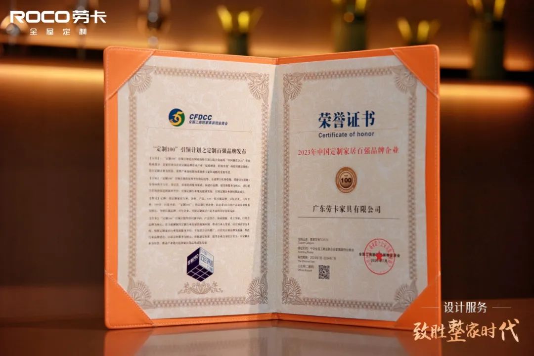 劳卡受邀出席本届大会,凭借口碑和产品质量的优秀表现荣获“2023年中国定制家居百强品牌企业”称号,整家定制20强!