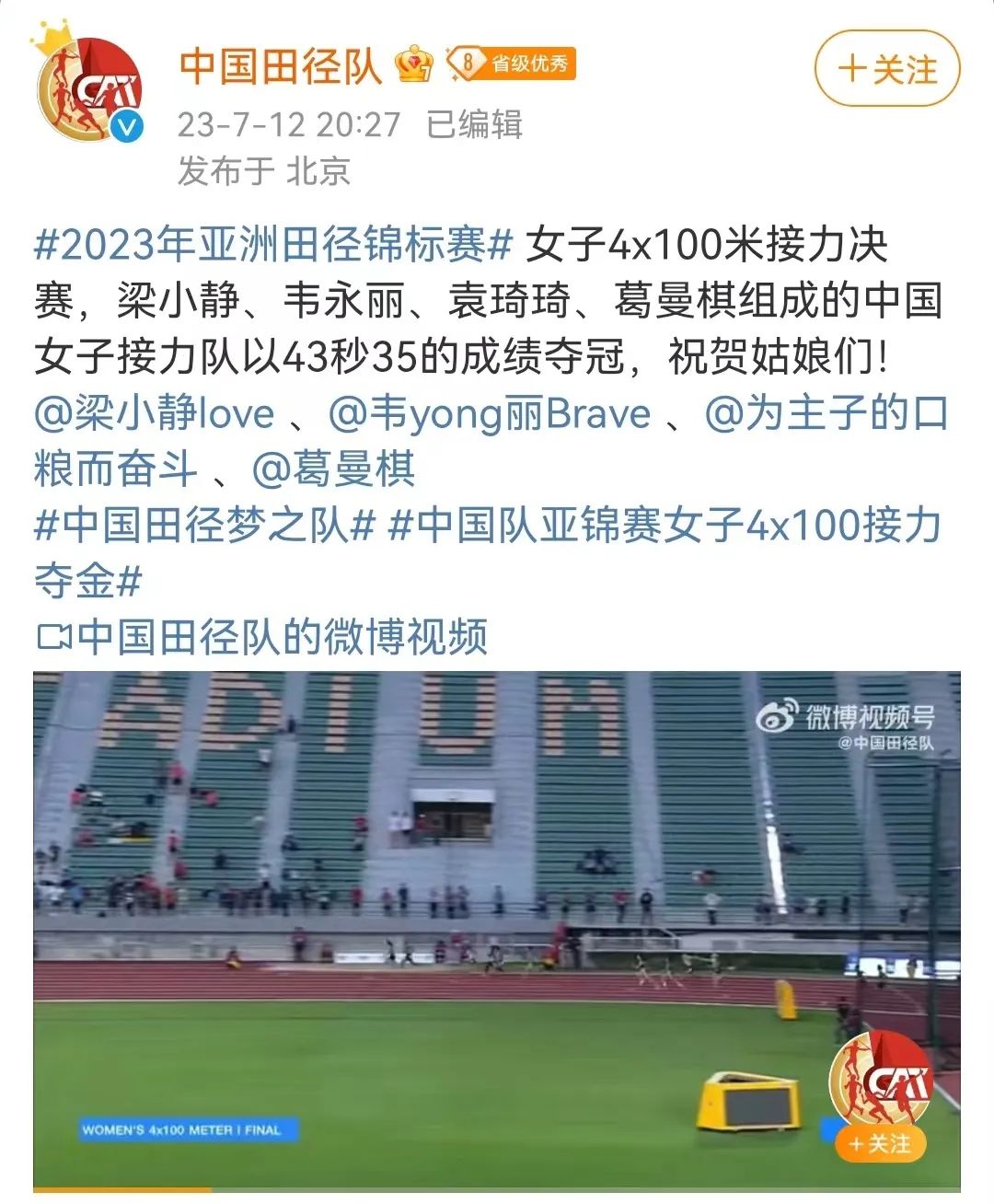 北京时间7月12日,2023年亚洲田径锦标赛迎来决赛日。