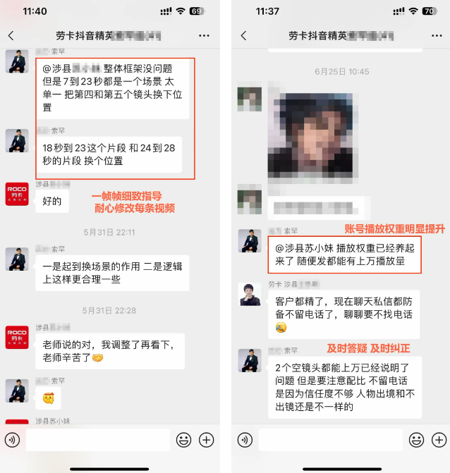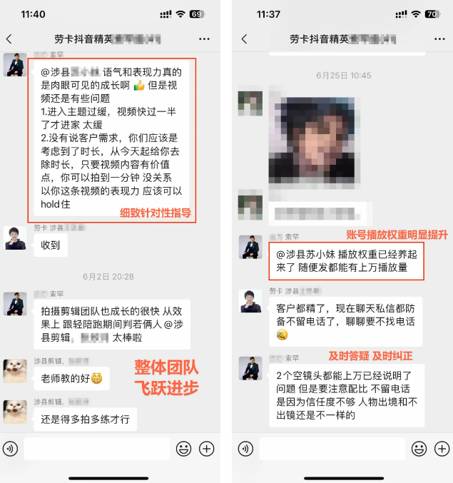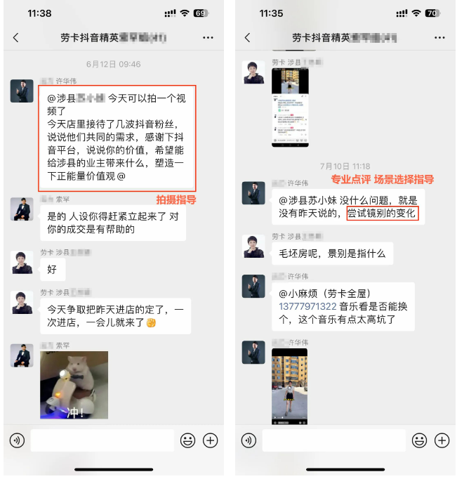陪跑老师以及总部老师一直向我们强调文案话术+场景选择在视频拍摄中的重要性:视频脚本要有大概的文案框架、逻辑,知道开头的黄金3秒要怎么说才能吸引用户注意力,因此涉县门店每次拍摄提前准备好,在实践中优化文案跟视频拍摄效果。