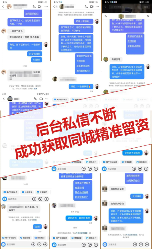 现在调整完账号权重,梳理好账号视频长期打法后,每天要做的事情就会变得很清晰,有了目标,接下来撸起袖子干就是了!就是这样汝州经销商在万盛公馆2期、龙山府这些重点小区,都拿到了20多户留资,目前成交了50+万。