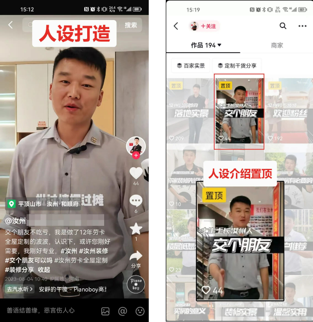 真实的人物呈现通过镜头全方面的展示你的工作状态、生活状态、情感状态,反复阐述我是做什么的,我的IP,我的价值,让用户关注我,追随我,潜移默化的因为喜欢你这个人而信任你说的产品而找你做定制。