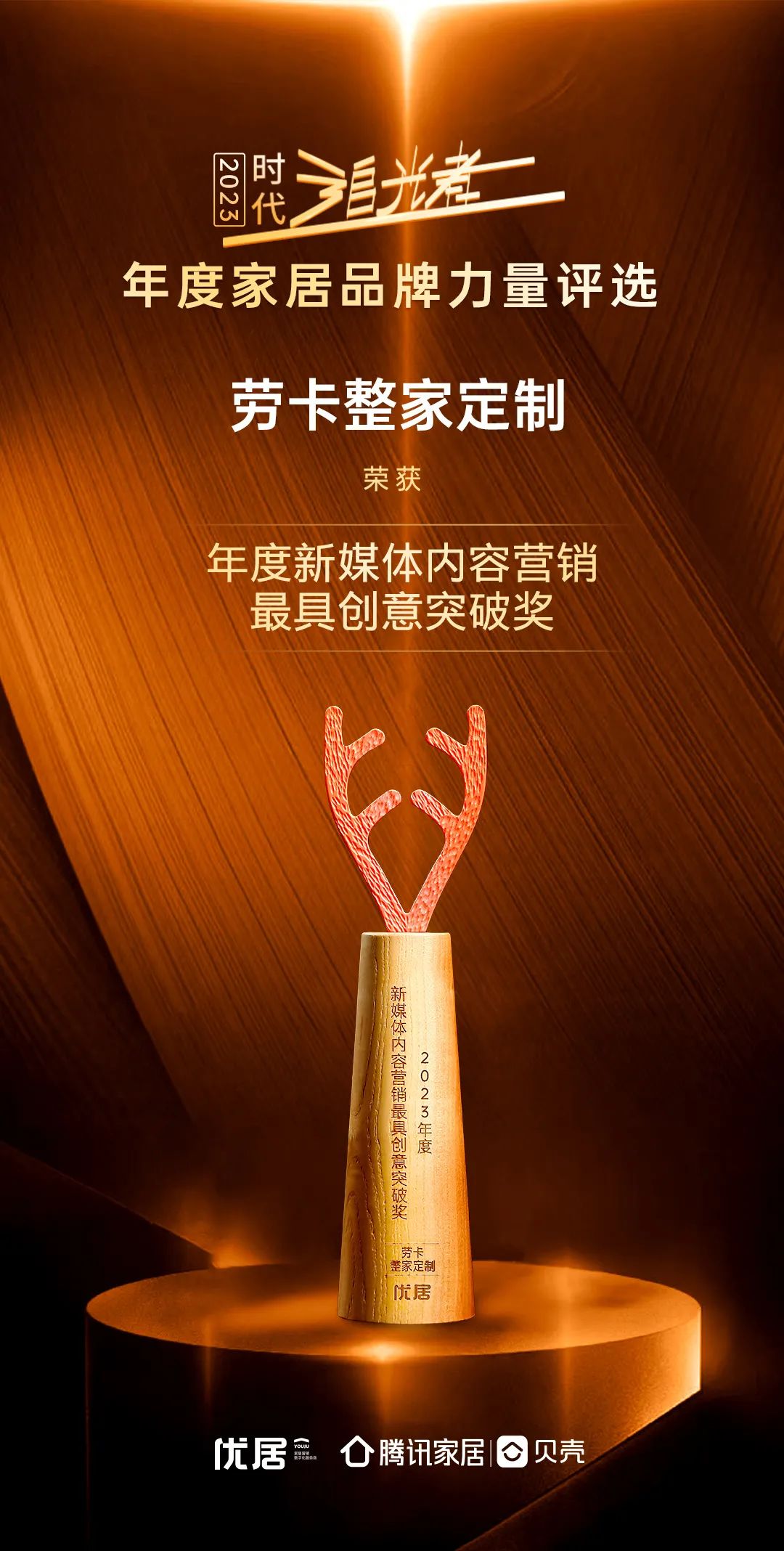 在此次峰会上,“时代追光者”2023年度中国家居品牌力量评选结果同步揭晓。劳卡凭借在新媒体内容营销领域中打破传统思维,推陈出新,对行业产生积极的影响和启示,斩获“年度新媒体内容营销最具创意突破奖”。