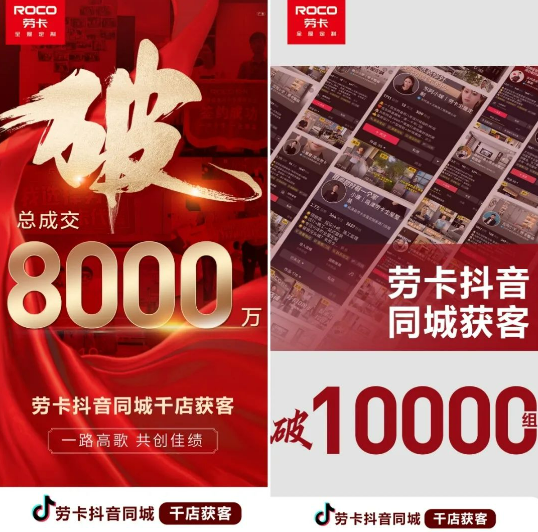 另外,抖音同城营销不仅破解了获客难题,还与劳卡的品牌营销大事件互相联动赋能,爆发出更大的营销声浪,赋能终端销售。