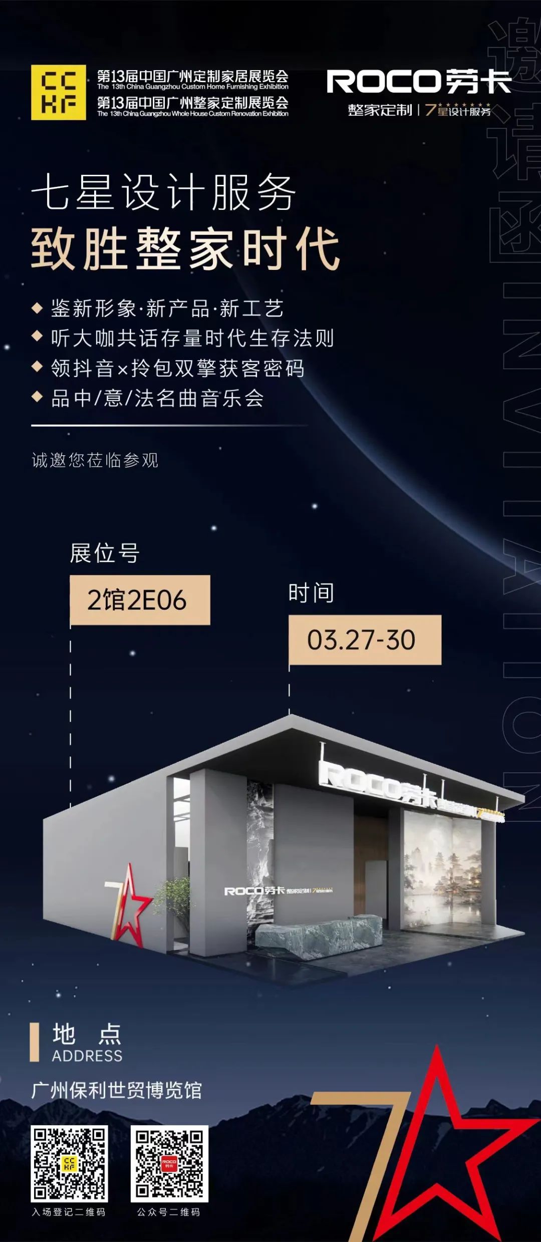 经济增势放缓,市场洗牌提速,存量博弈时代全面开启。“内卷”主旋律下,家居企业如何迎战整家下半场?广大家居经销商,如何寻求新的赚钱效应?在此背景下,第13届广州定制家居展暨广州整家定制展将于3月27日至30日盛大开幕。本届展会以“定制存年”为主题,旨在以“存”为视角重新思考行业内外格局、企业经营逻辑,以前瞻的市场目光应对时代洪流的冲击。劳卡整家定制作为 “全球定制之都”示范企业,将以七星设计服务为核心,剑指整家市场,并携核心竞争力产品重磅亮相“广州定制家居第一展”,共同探寻存量时代的生存法则。