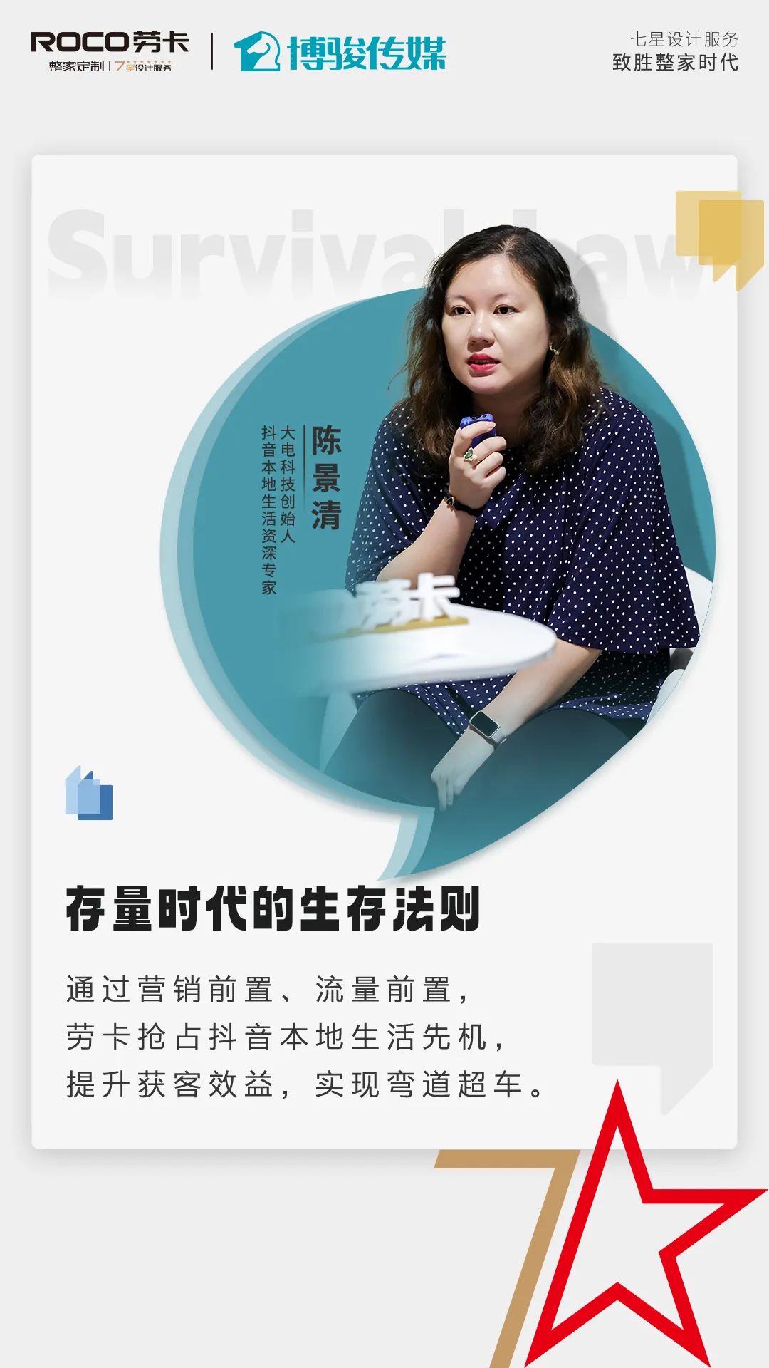 大电科技创始人/抖音本地生活资深专家陈景清强调“要流量前置、营销前置、让消费者知道企业在做什么”,是定制家居企业在线上获客实现弯道超车的重点。纵观劳卡抖音同城+拎包渠道双擎模式,正是对以上三个维度的有力诠释。一方面,劳卡编织总部为行星、经销商为卫星全域发声的“天网”,打造出强大的抖音同城IP矩阵,通过本地POI定位精准触达潜在消费群;另一方面,结合拎包营销前置策略,劳卡根据小区楼盘的交付进度定制化制作抖音视频,用消费者关心的优质内容吸引关注,赢得信赖,发挥出1+1≥2的联动效应。