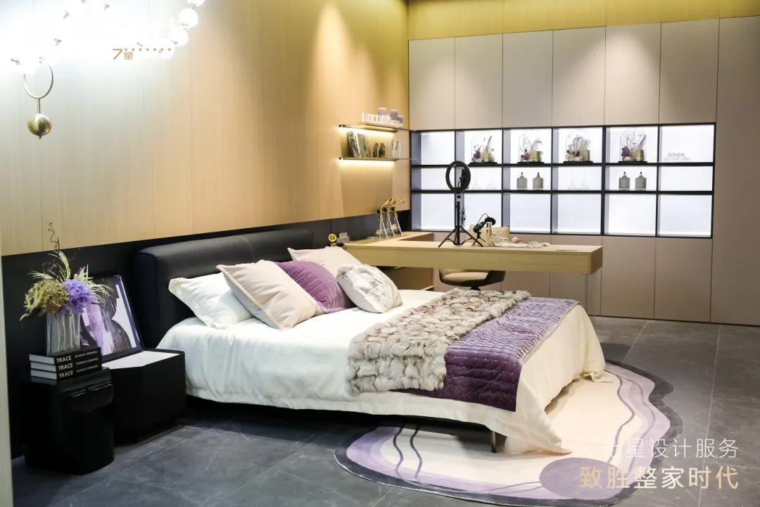劳卡展馆设计充分融合“七星”视觉锤品牌符号,符号在展馆内外随处可见,形成了强烈视觉冲击力,吸引了众多观众驻足品鉴。在差异化战略引领下,劳卡将“七星设计服务”楔入品牌视觉形象,它清晰地表达出劳卡将回归定制的本质,以“设计服务”为核心的品牌差异化定位,以极强的品牌辨识度,与其他定制品牌形成区隔,打造独一无二的超级符号。