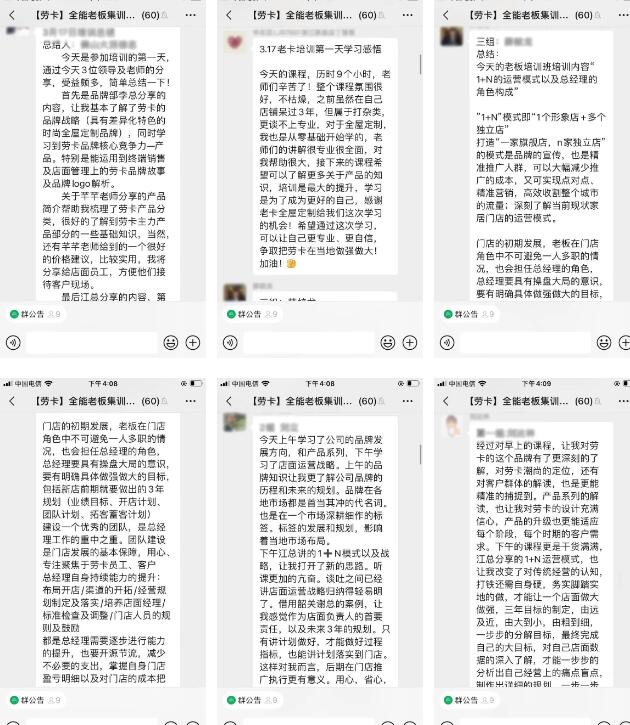 培训期间,经销商们都专心致志,认真的聆听,及时地记录并积极的讨论,互相探讨问题,沟通交流,学习氛围热烈,他们也在培训后纷纷表达了自己对此次全能老板集训的感受。