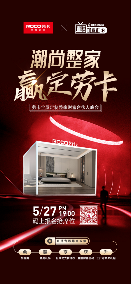 5月27日19:00,潮尚整家·赢定劳卡——劳卡全屋定制整家财富合伙人峰会线上直播,向有意从事定制行业的创业家朋友们全面开放,现场还将发布更多品牌新看点、加盟好政策。