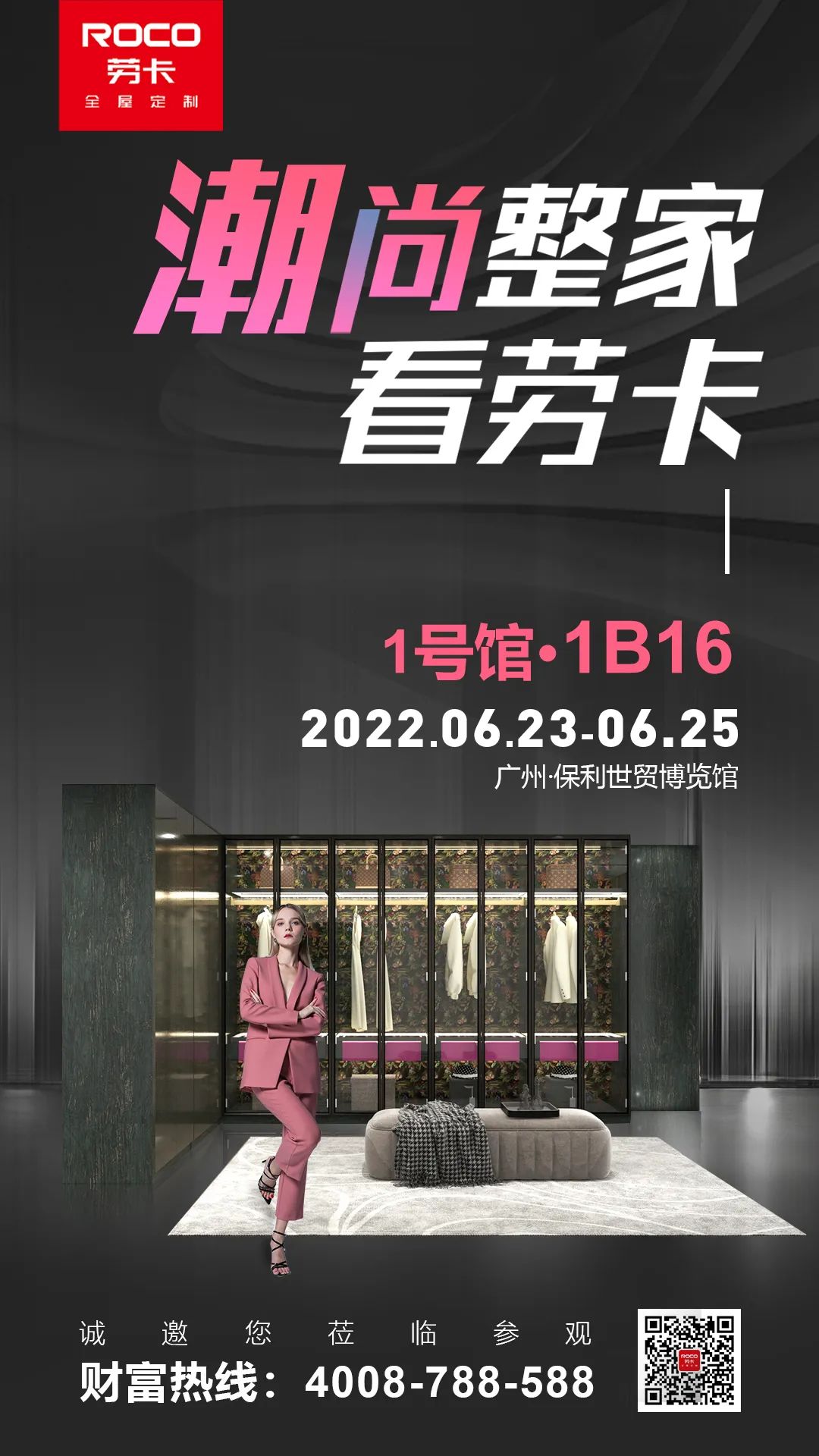 2022年6月23日-25日,第十一届中国广州定制家居展览会,将在广州保利世贸博览馆强势开启。劳卡全屋定制,作为拥有18年历史积淀的定制家居品牌,此次将以【潮尚整家 看劳卡】为主题,携新品“Z潮代”重磅亮相本届展会,为各位带来新一代的沉浸式空间体验,届时诚邀各界精英莅临1号馆1B16展馆,共襄盛举。