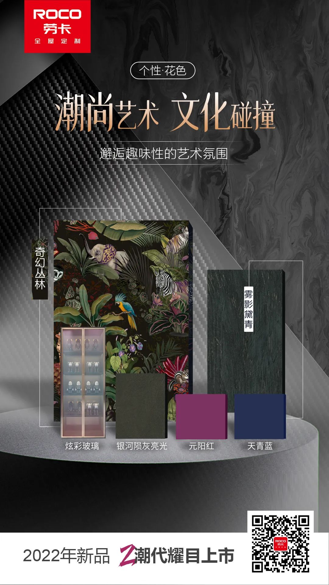 Z世代潮尚浪潮之中,劳卡带着冲破浪潮的那股劲,在本次展会上,重磅推出酷炫新品——Z潮代,将潮流一体化整家产品与品质生活结合,在潮流与艺术之间发掘个性,以潮颜值潮功能探寻新一代美学,全方位对当代潮尚生活范本呈现演绎。