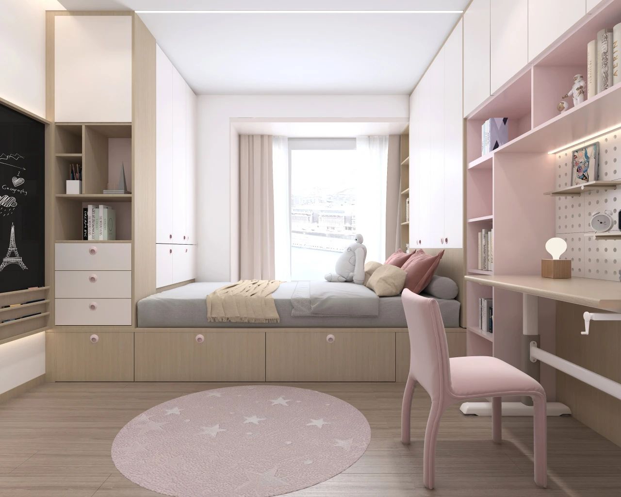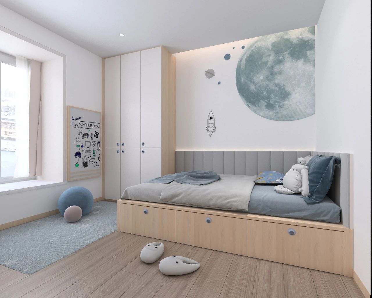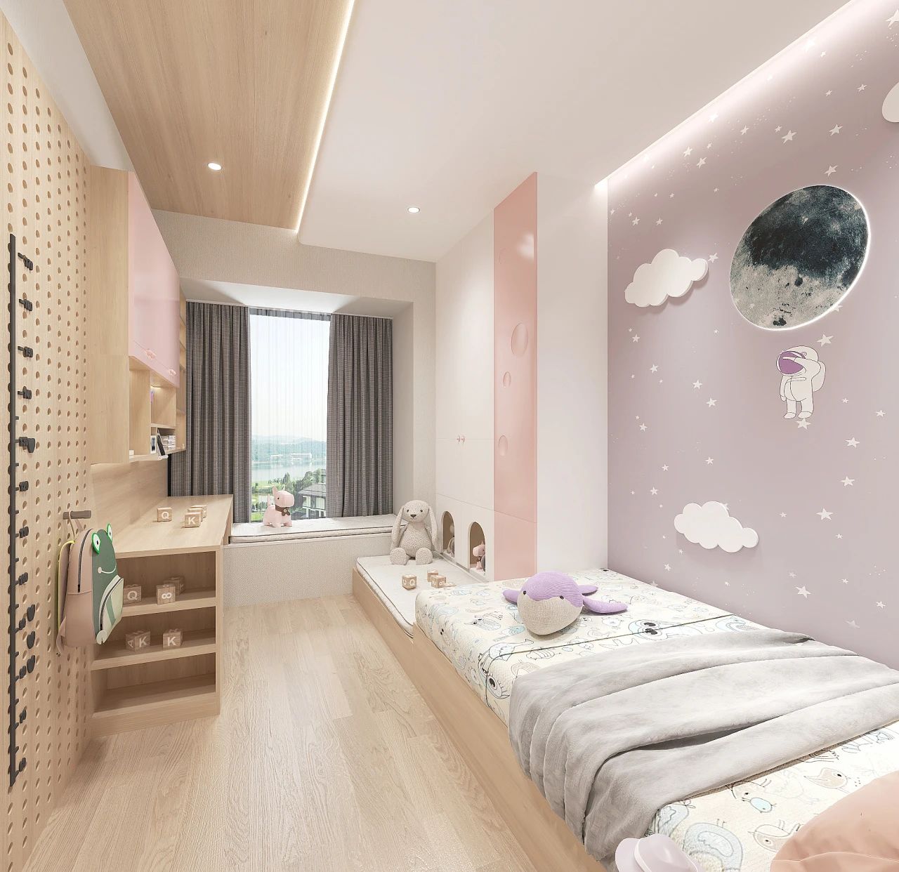 初步规划空间的时候,儿童房的光线要充足,这样不仅能保护孩子的视力,还能保证空间的明朗,有利于孩子的身心发展。