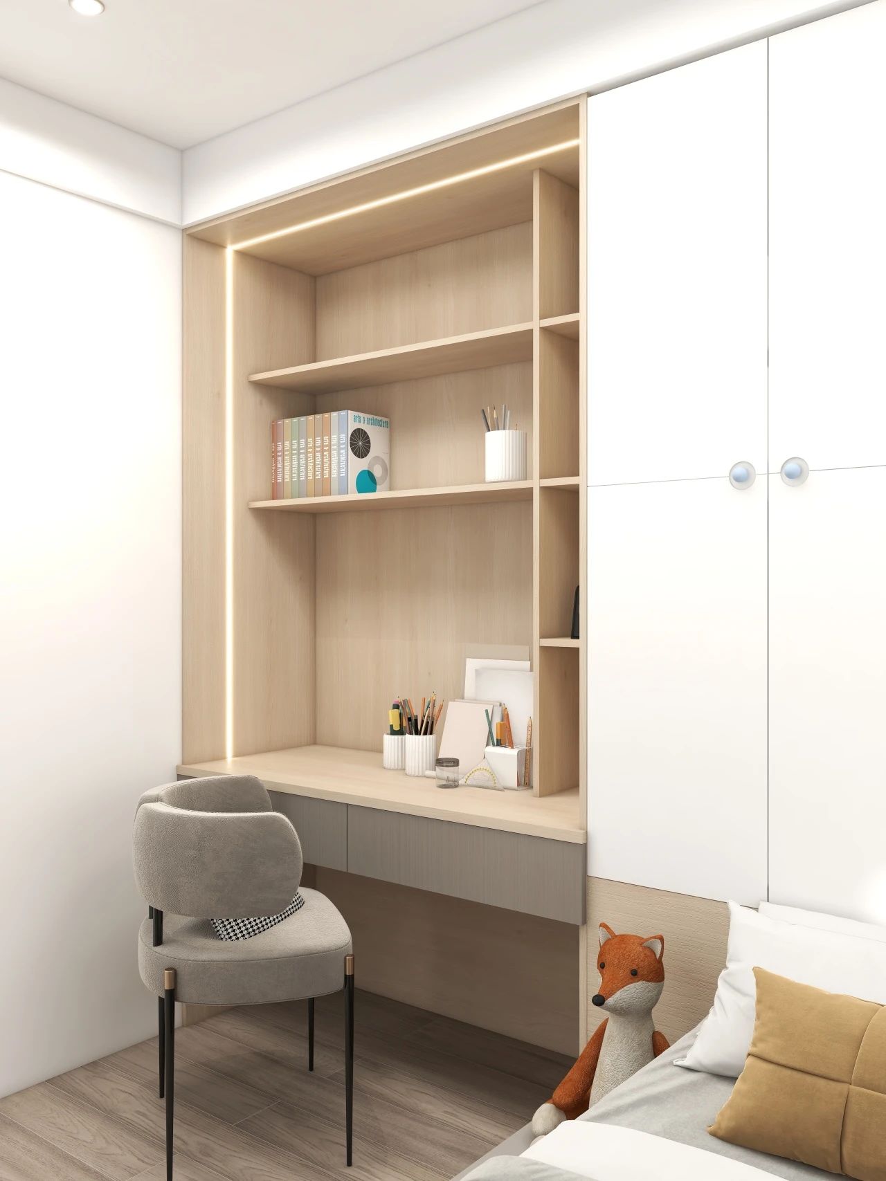 上学以后,书房成为儿童房的必备功能区。