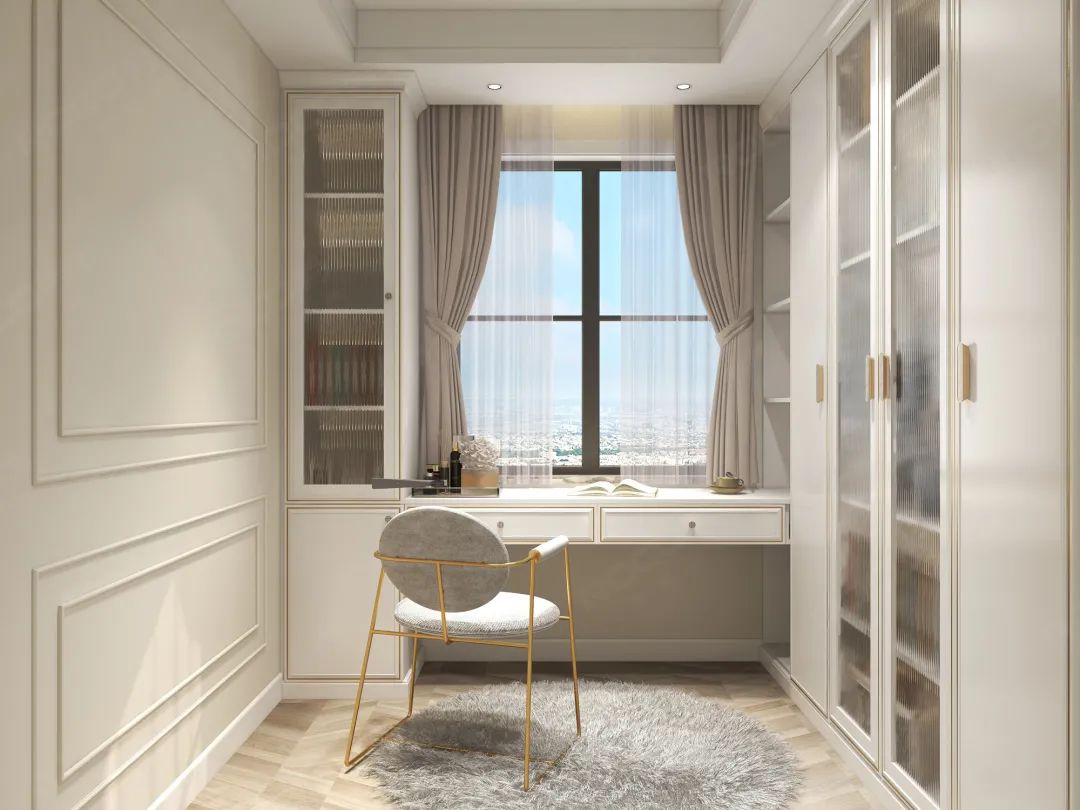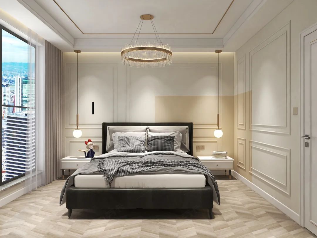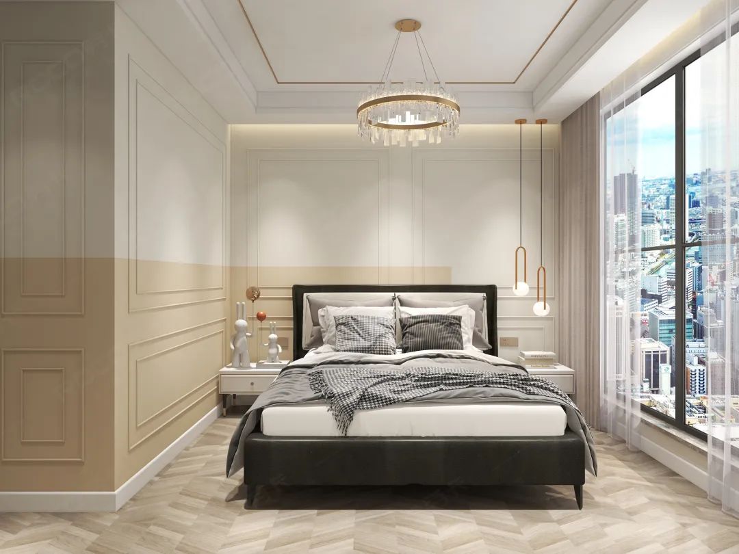 次卧延续整体现代简欧的风格,浅色系的整体基调给人以空濛雅致的氛围感以及舒适从容的归属感。
