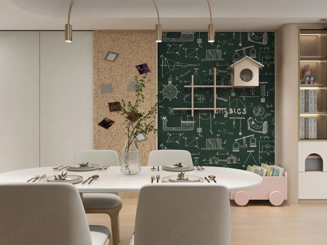 大大的黑板绘画墙,给@茜仪&@嘉乐的孩子提供一个自由发挥想象力的地方,一家三口共享亲子时光,美好和谐。