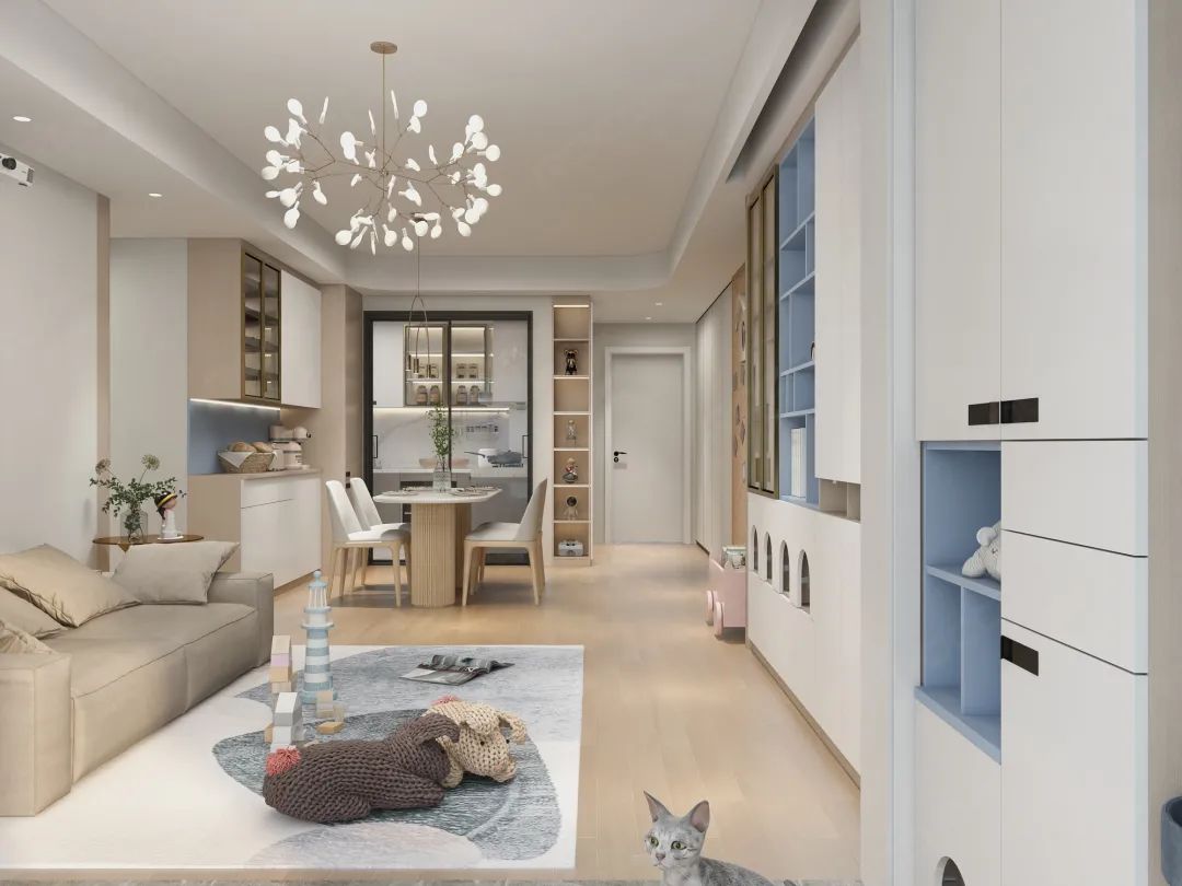今天分享的这套87㎡三居室,自然空间与活跃跳动元素交织沉淀出童趣的温馨浪漫时光,在现代简约的设计中享受温馨生活。